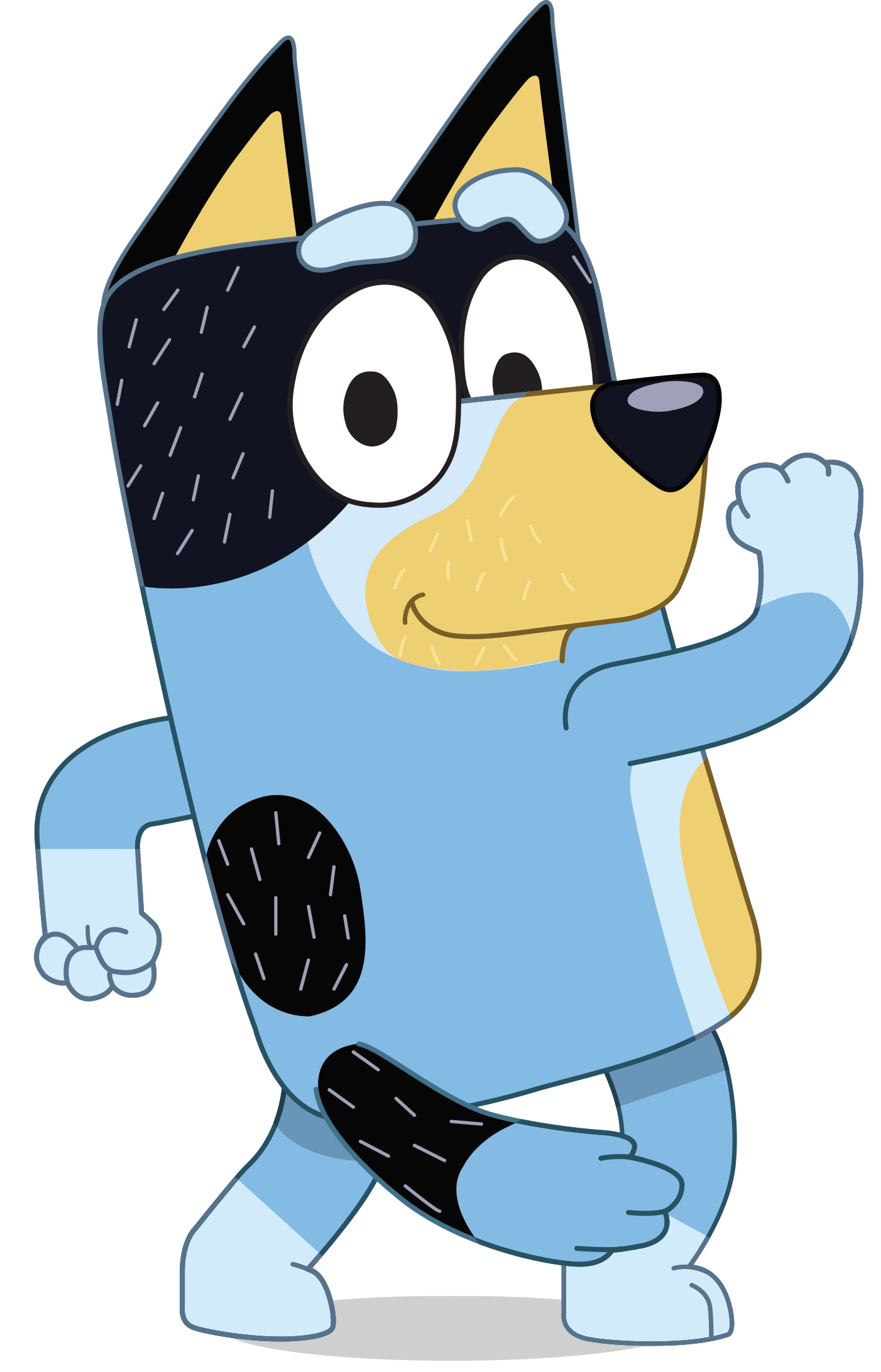 Bandit Heeler stands out with his tall stature and blue fur, accented by his distinctive facial markings. His attire usually consists of comfortable clothes that don’t hinder his ability to play and explore with his kids. His overall appearance exudes a sense of fun, approachability, and a readiness to embark on any adventure that comes his way.