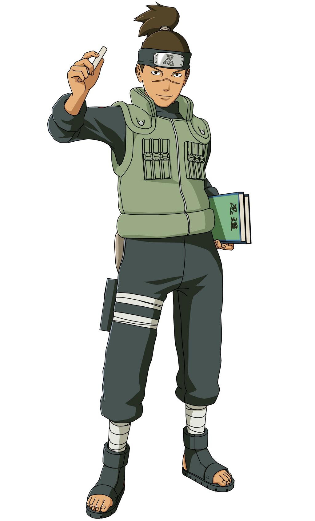 Unique Features: Iruka’s most distinguishing feature is the scar across the bridge of his nose, a testament to his bravery and a life lived on the frontline of battle. He dresses in the standard attire of a Leaf Village shinobi, yet his presence is softened by the warm, inviting smile that frequently graces his face.